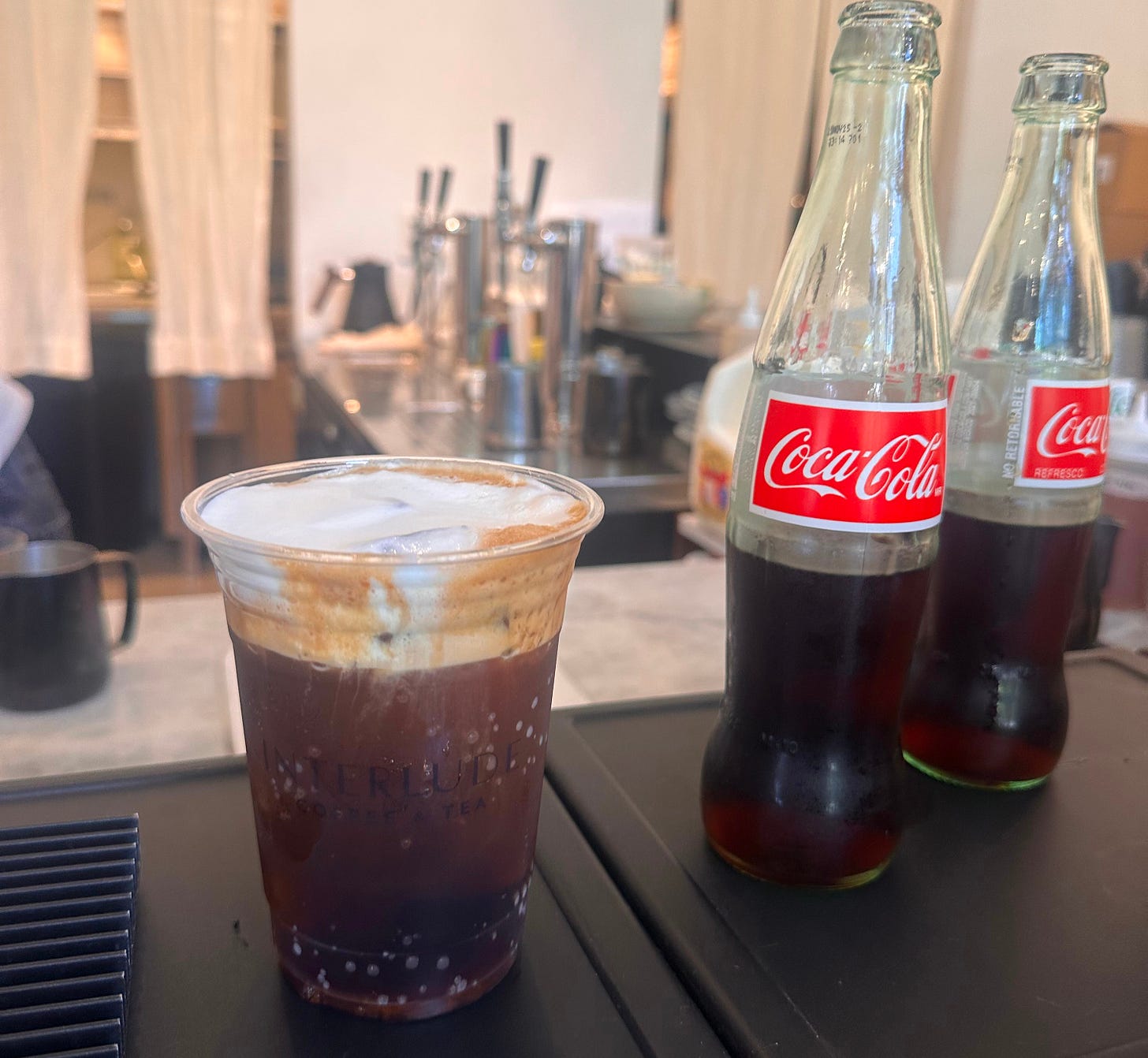 Stopped into Interlude for an afternoon coffee and ordered their specialty drink the Cadenza. It’s espresso over ice with a Mexican coke and heavy cream and the texture this creates is truly interesting. Also I felt like a little science experiment as I was drinking it.